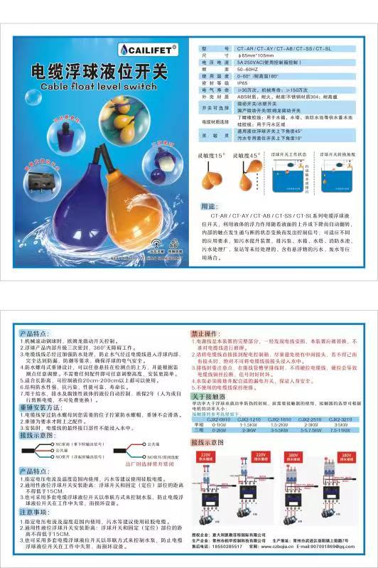 2.通用性液位浮球开关安装距离:浮球开关和固定(定位)部位的距离不得低于15CM.